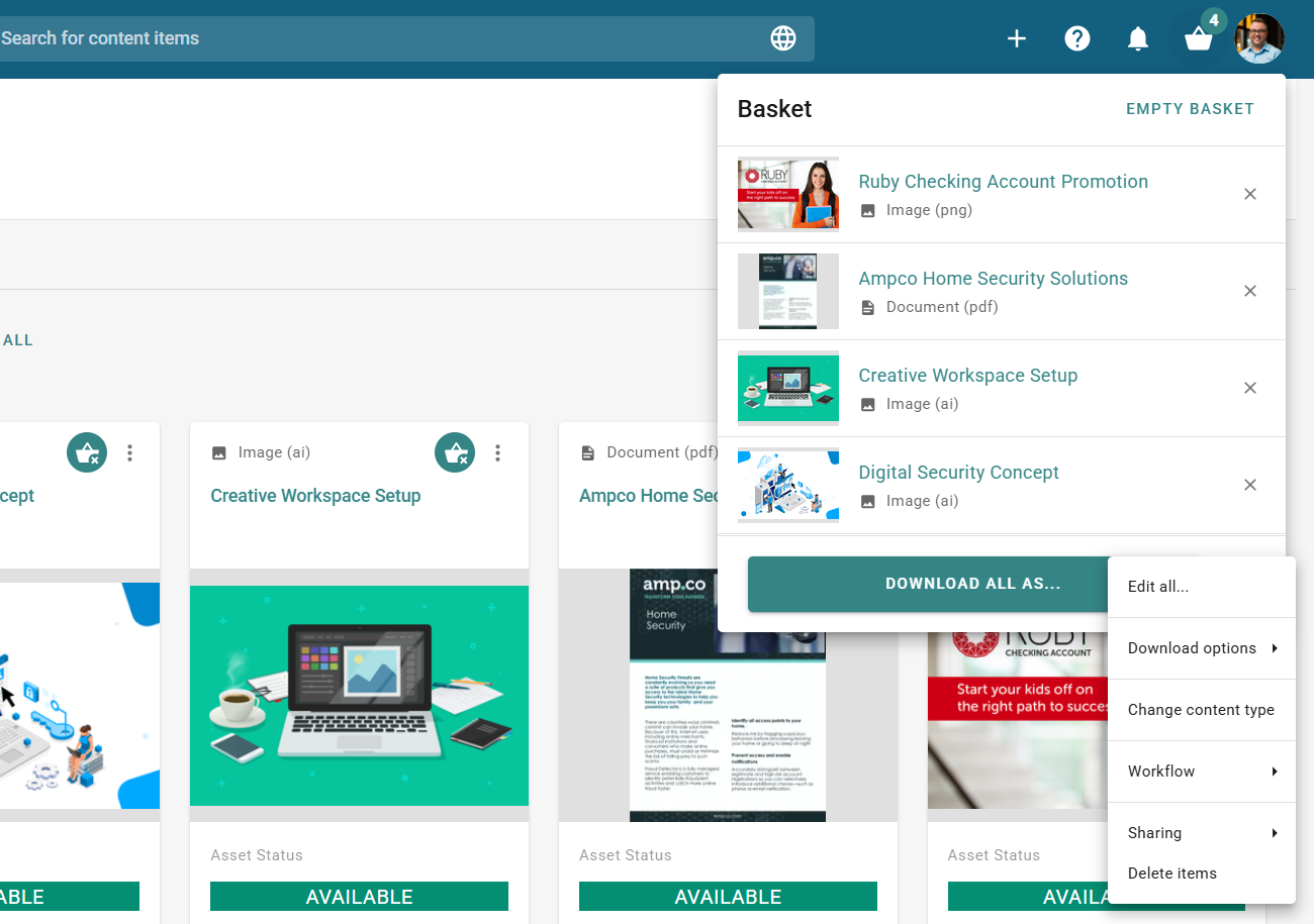 Contributors can add or edit content within the DAM. While uploading assets to DAM, Contributors can enrich them with data so that they can be located and reused for any future use case. They also have access to more advanced options based on their permissions.